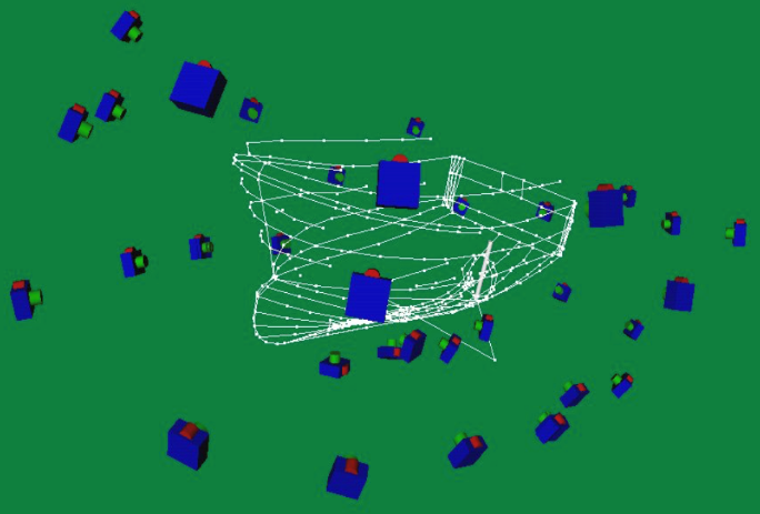 Le principe de la photogrammétrie est somme toute le procédé inverse. On a plusieurs points invariants appartenant à une surface (quel que soit les mouvements de la surface dans l’espace, ces points possèdent toujours les mêmes coordonnées dans le repère objet) et plusieurs points de vue dont la position 3D dans l’espace n’est pas connue (positions successives de l’appareil photo) mais qui « visent » ces points appartenant à la surface.